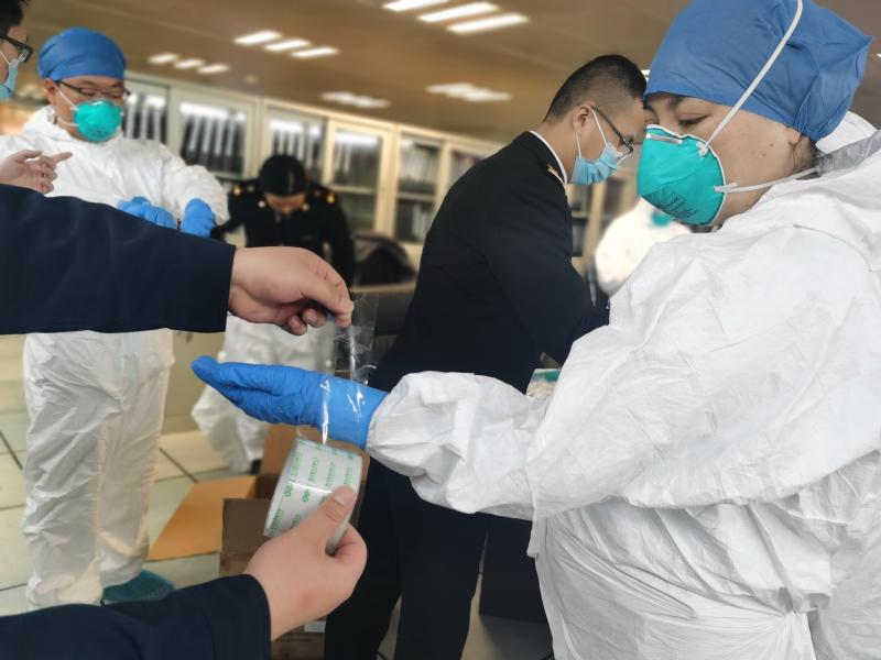 一線的衛生檢疫人員,已經忙到根本沒時間坐下。他們的輪班是這樣的——從天9時到21時,回家睡一覺,第二天又來上班,從21時做到第三天的9時。他們從節前一直戰斗到現在,其中,有人取消了婚期,有人無法陪夫人分娩,也有人將兩個孩子單獨拋在家中。隔三差五,就有人忙到昏倒——他們穿著規定時效為4小時的防護服,但往往10小時都脫不下來,期間滴水不沾、粒米不進,也不上廁所。記者在現場看到,有檢疫關員們正在互相幫助改善防護服——沒有更高級別的膠條防護服,他們只能用玻璃膠布幫助同事將手腕處手套與防護服的連接處盡可能地封住。他們都很珍惜防護物資,專門有個物資小組,每天掌握庫存、統計現場使用量,再精準地向上級申請。