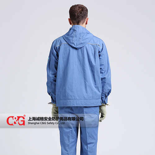 誠(chéng)格交流高壓靜電防護(hù)服套裝由交流高壓靜電防護(hù)服上衣、褲子,導(dǎo)電襪,全棉導(dǎo)電手套及導(dǎo)電鞋組成。交流高壓靜電防護(hù)服上衣、褲子采用導(dǎo)電材料與紡織纖維混紡交織成布后做成的服裝,防護(hù)服面料采用金屬纖維和紡織纖維以相應(yīng)的特殊工藝混紡而成。